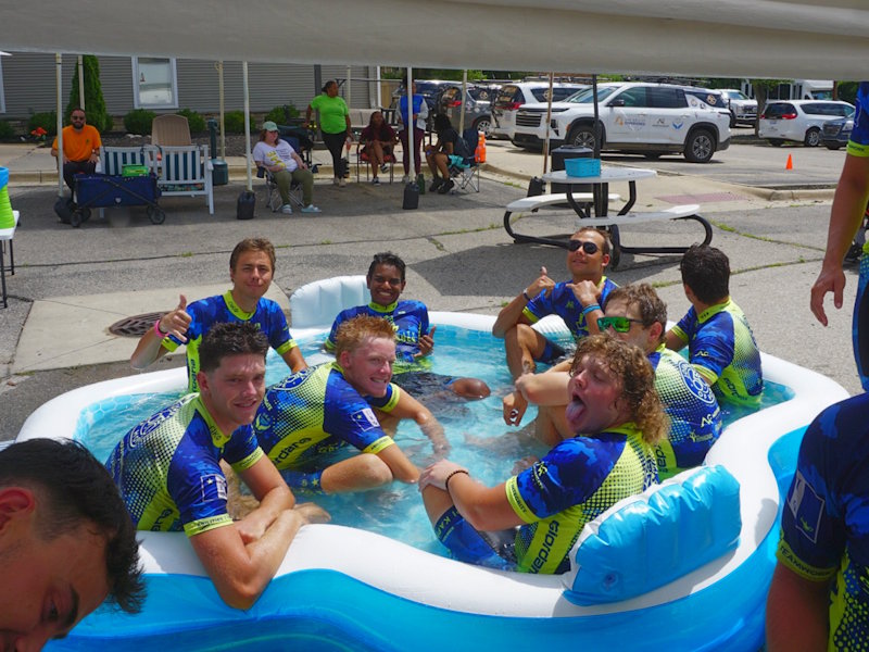 Super fun day today! It was a hot one, so my pace line decided to jump into as many bodies of water as we could! Final count was 16 — some nicer than others. East Lansing was a pretty cool college town, and we had a great dinner at Beggars Banquet and Cold Stone for dessert!