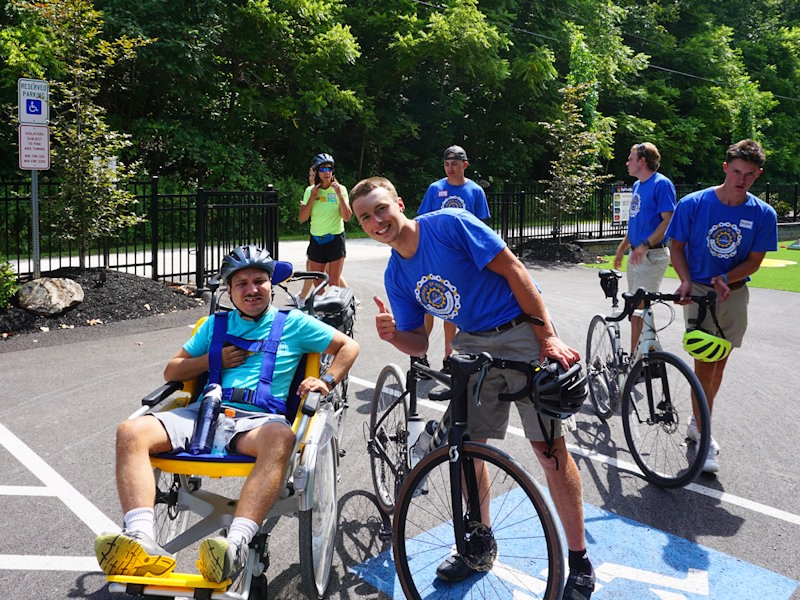 Pleasantly surprised by Pittsburgh – second best city on the trip in my opinion! The ride was long, our last century, and had some hiccups – but was still fun. We stayed at the YMCA both nights, definitely our tightest fit yet. First night we went to an alumni-owned sports memorabilia shop for dinner and had free access to the arcade. On our day off we had an awesome friendship visit with Always B Smiling, where we got to go on a bike ride with the friends! To top it off we got free Pirates tickets from an alumni! Great way to spend our last off day!